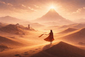 Journey is a short, artistic adventure game centered on exploration and movement. Players guide a robed traveler across a mysterious desert toward a distant mountain 🌄🧭.
